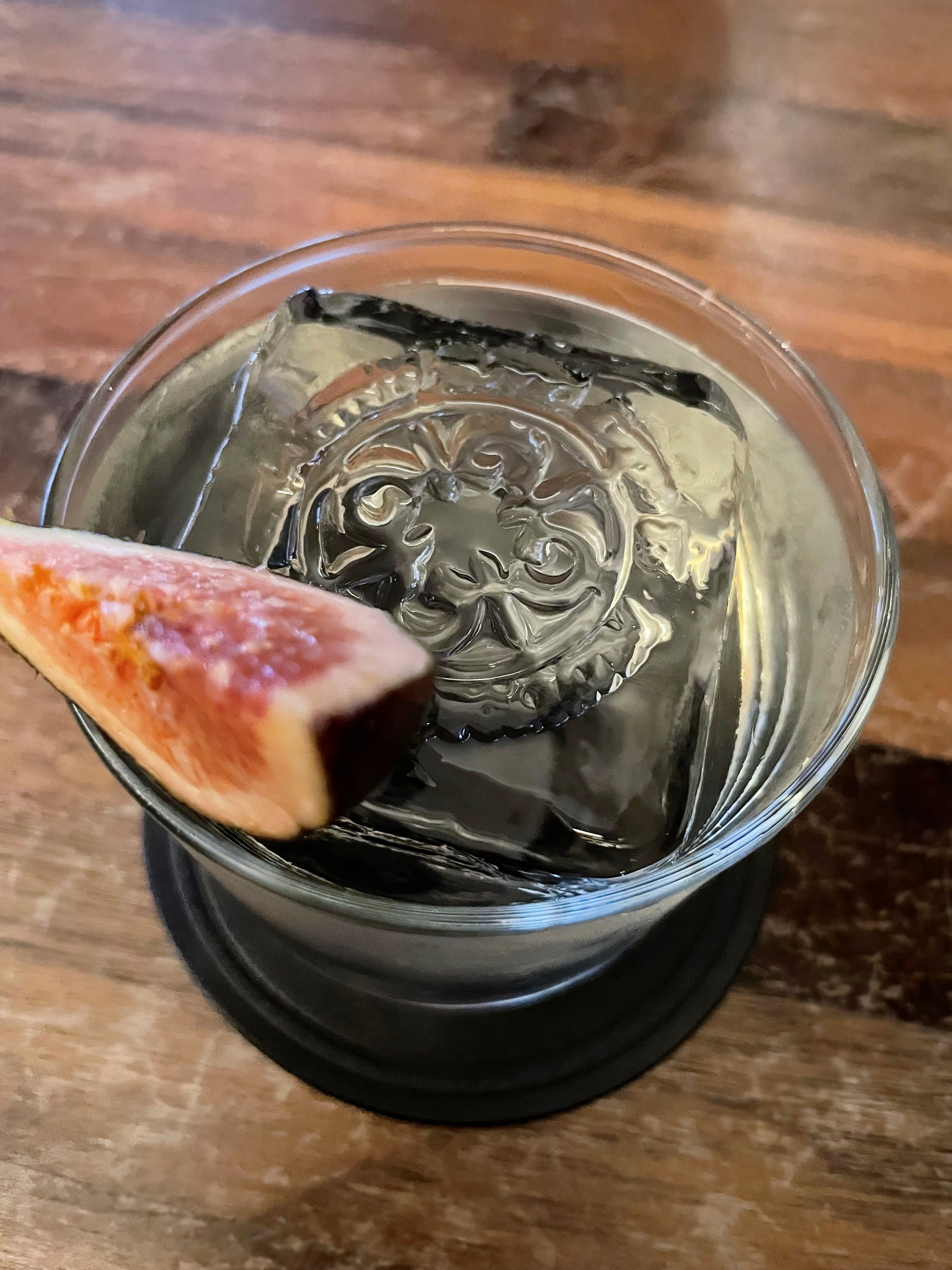 Garnish: Nocellara Olive and/or Citrus Peel. Or why not try a fig?