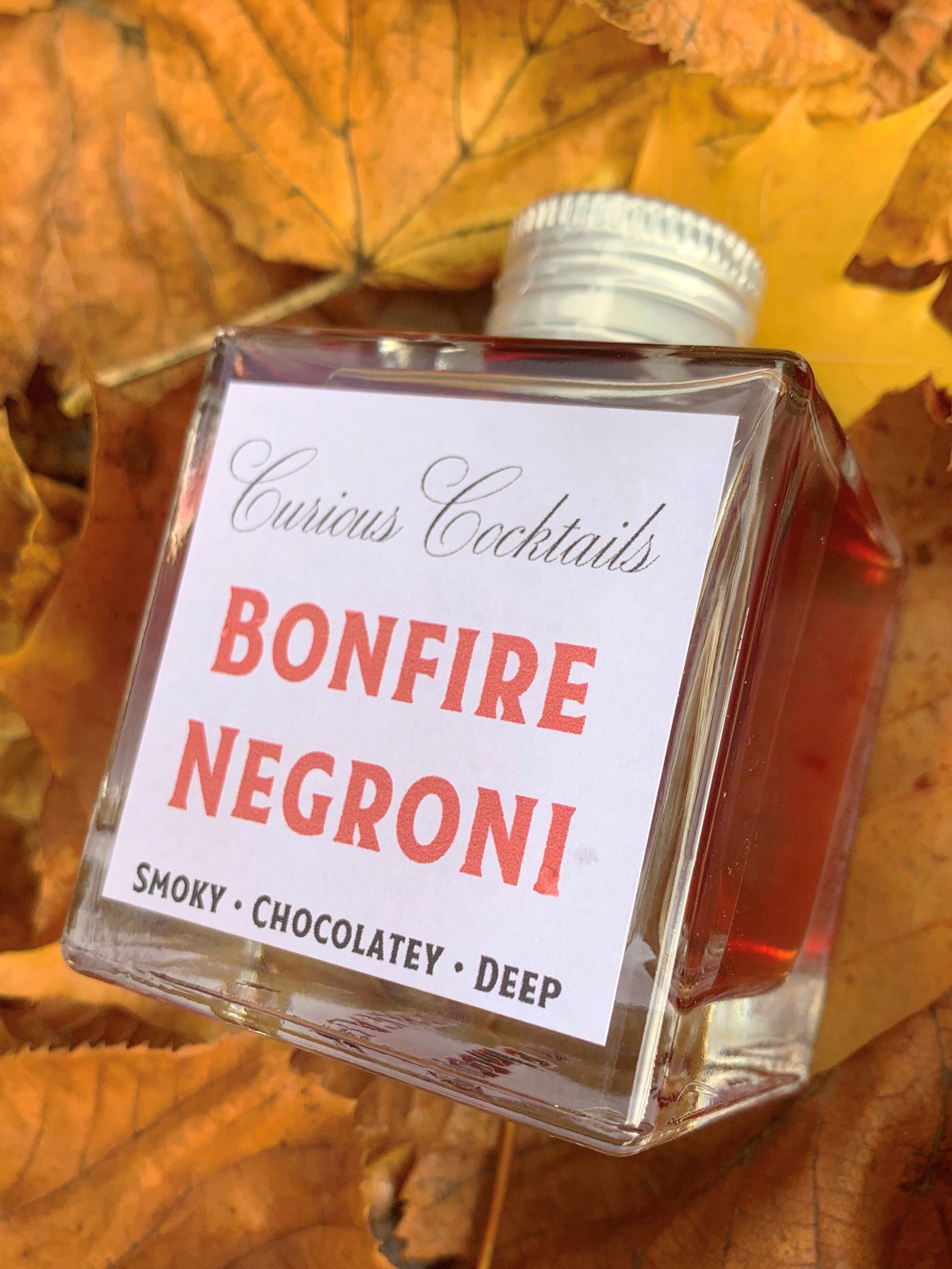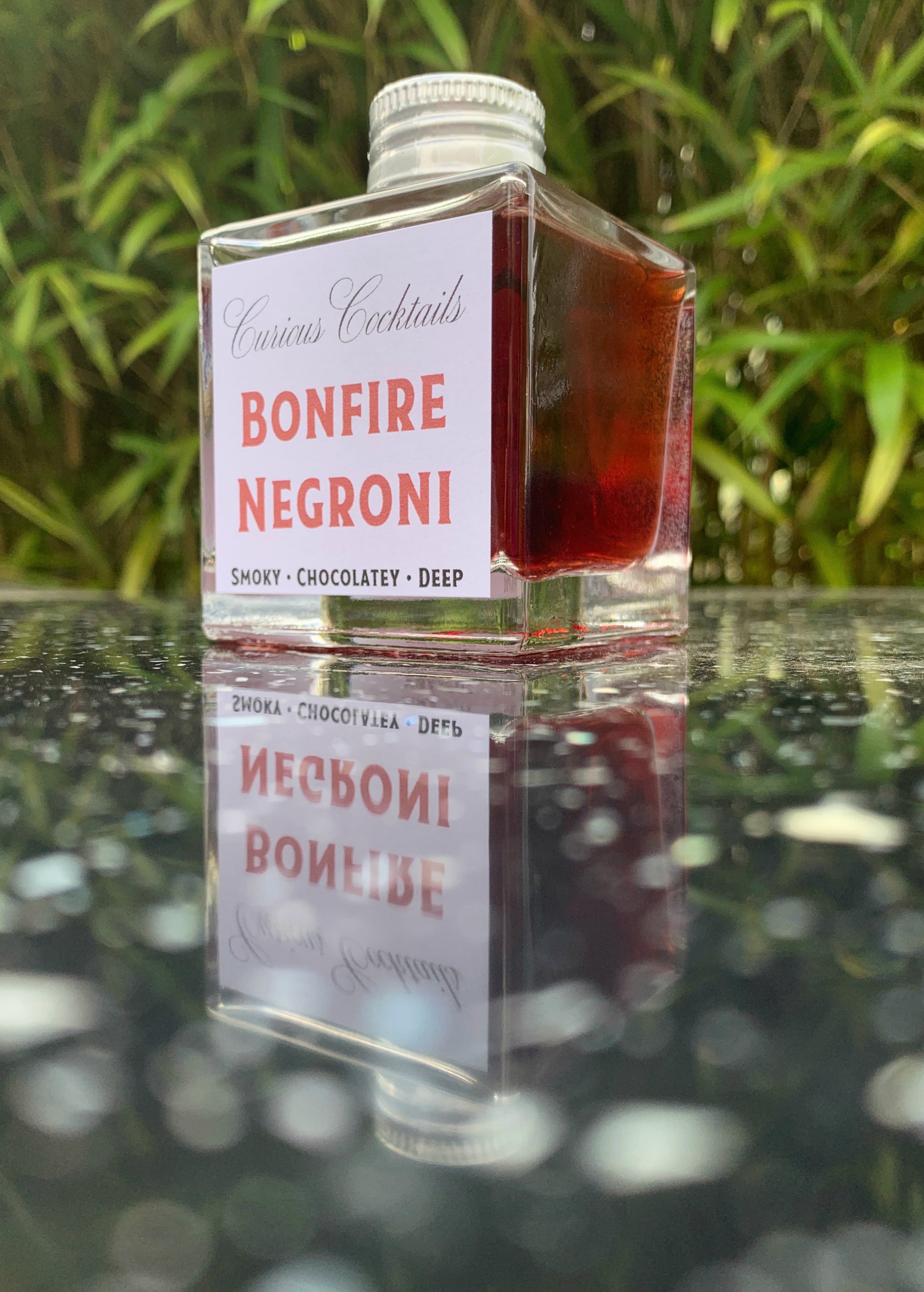 "Just like anything truly delicious, this Bonfire Negroni is sure to grow on you very quickly. Incredibly deep and complex, utilising the aromatic spices from Hidden Curiosities gin as the base, a lingering smokiness from Mezcal, a modest sweetness from Red Vermouth, bitterness from classic Campari, and finally finishing off with rich and chocolatey notes from Bob's Chocolate Bitters. Garnish with grated dark chocolate and orange peel - trust me, you'll love this!"